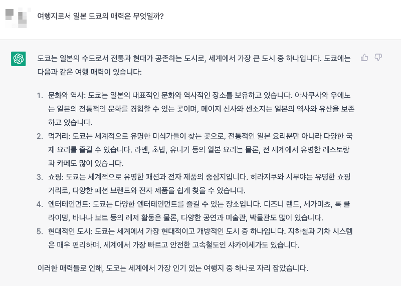 ChatGPT에서 묻는 일본 도쿄의 매력은?