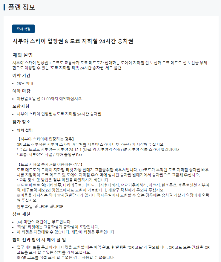 도쿄 시부야 스카이 X 도쿄 지하철 1일권 패스 예약 방법 😄