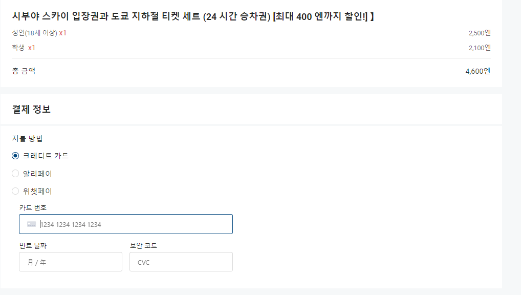 마지막으로 결제 정보를 입력하고 결제를 하면 끝!입니다.