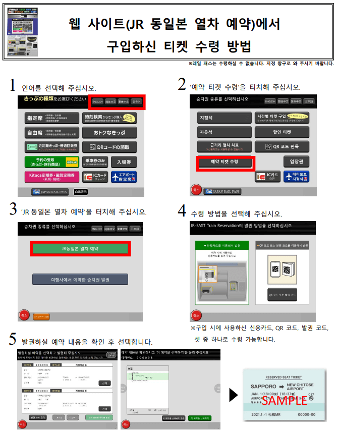 홋카이도 북해도 JR 레일 패스 지정석 티켓 수령 방법 🆗🙆♂️