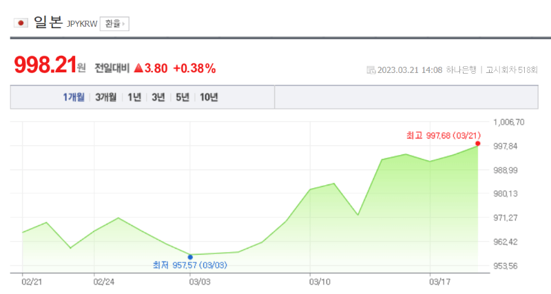 2023년 3월에는 엔화 환율이 급등하는 추세인데요.