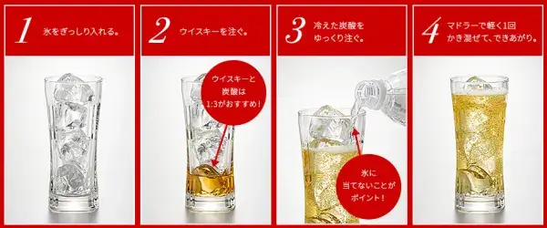 아래는 가장 일반적인 하이볼 제조 방법입니다.