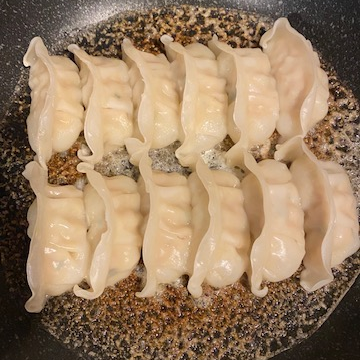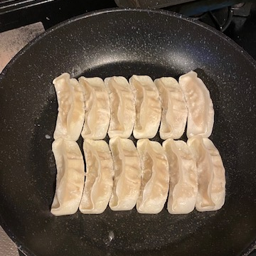 1. 프라이팬에 만두를 나란하게 정렬한다.