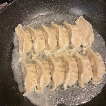 일본식 만두는 후라이판에 구워서 밑면은 바삭한 식감을 느낄 수 있고 위에는 찐만두식으로 촉촉함을 느낄 수 있는 게 일반적입니다.