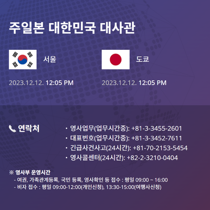 다음은 일본에 있는 대한민국 대사관을 이용하는 방법입니다.