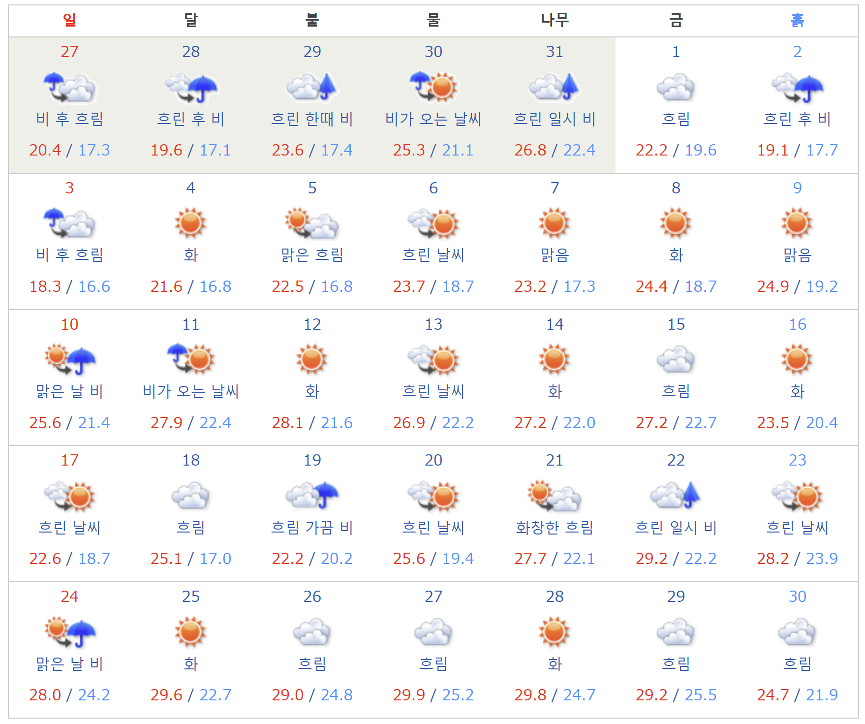 옛날 날씨를 보면 앞으로의 날씨를 확인할 수 있을 거예요.