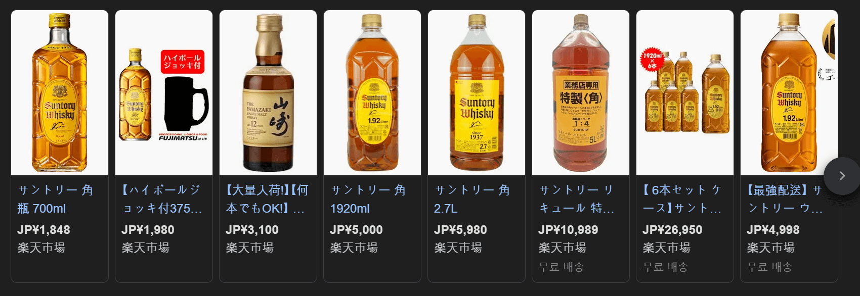 4) 면세점 및 대형 할인 매장의 경쟁 일본에서는 면세점이나 돈키호테 같은 대형 할인 매장에서 위스키를 합리적인 가격에 판매합니다. 특히 관광객들을 위해 면세 혜택을 제공하는 경우가 많아, 일본 내에서 구매하는 것이 해외보다 훨씬 저렴할 수 있습니다.