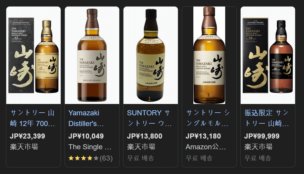 | 야마자키 12년 | 약 10,000엔 | 약 $200~$300 |