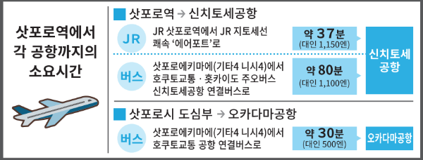 삿포로의 공항인 신치도세 공항에서 삿포로 역까지는 급행으로 약 37분으로 비교적 빠르게 이동하실 수 있습니다.